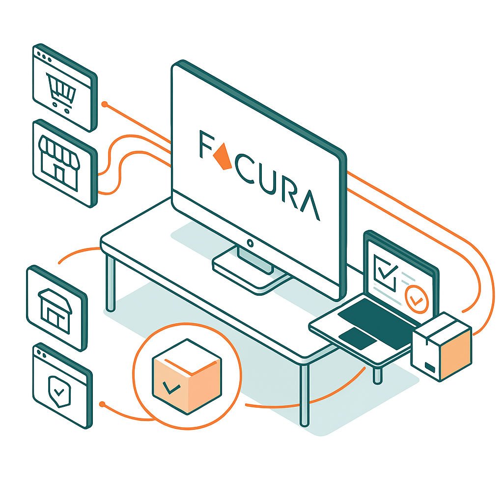 Die Ware kommt direkt aus dem Online-Shop bei Ihnen an, während Sie von FACURA eine passende Rechnung mit Ihrer Bestellnummer als Referenz erhalten.